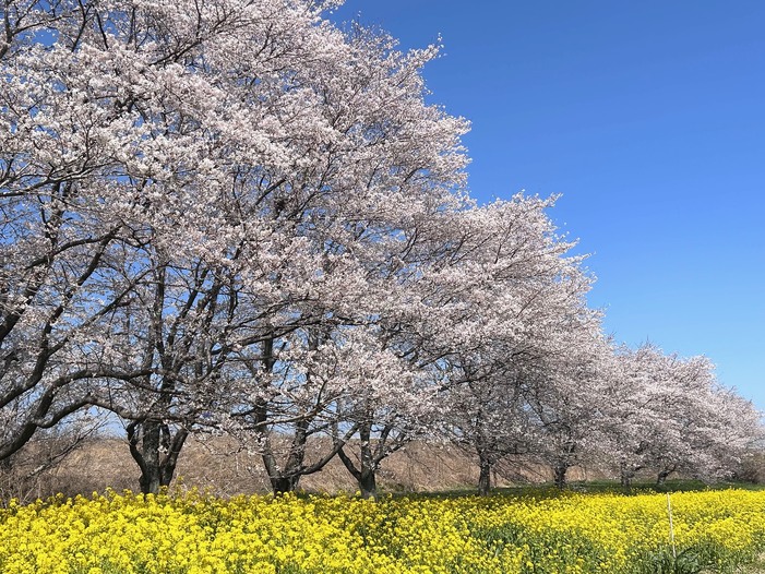 桜は通称「平成桜」と呼ばれ、地元の保存会の方々が整備している黄色の菜の花との共演が、さらに癒やしをあたえてます。穏やかな陽射しに菜の花に戯れるモンシロチョウチョも、優しい気分にさせてくれてますね。